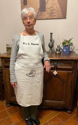 Un grand merci à Françoise, « la femme du président », « la couturière » qui nous a confectionné un tablier à l’éloge de l’ALC Rando.