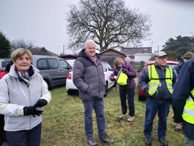 Michel Peinaud en « guide fil » et Monique en « serre fil » ont accueilli les 28 marcheurs au parking de la canardière.